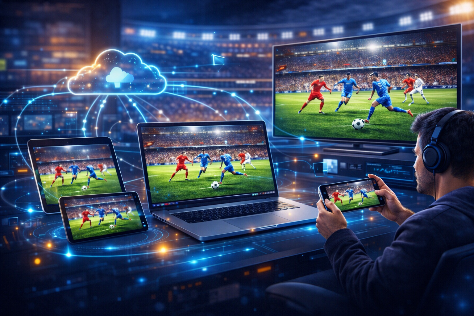 Nền tảng xem bóng đá trực tuyến đa thiết bị là hệ thống cho phép người dùng truy cập và theo dõi các trận đấu trên nhiều loại thiết bị như: